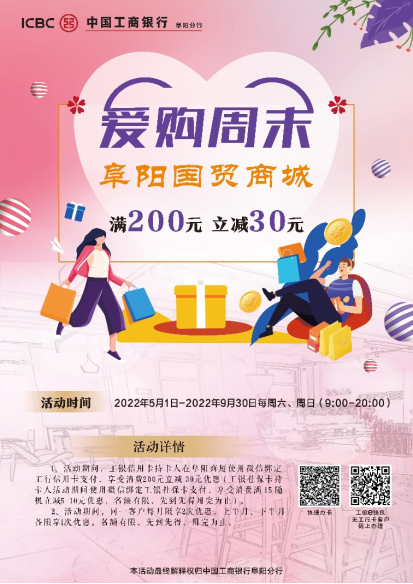 | 【工行溫度】送你一本優(yōu)惠秘籍!工商銀行阜陽分行愛購盛夏福利多多,滿減優(yōu)惠活動享不停! |