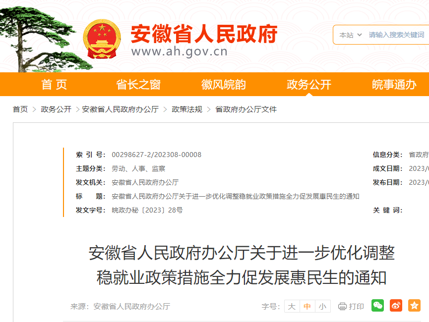 大皖新聞?dòng)? 8月10日,安徽省人民政府網(wǎng)站發(fā)布《安徽省人民政府辦公廳關(guān)于進(jìn)一步優(yōu)化調(diào)整穩(wěn)就業(yè)政策措施全力促發(fā)展惠民生的通知》。通知提出,動(dòng)態(tài)調(diào)整就業(yè)困難人員認(rèn)定標(biāo)準(zhǔn),兜牢困難群眾生活基本保障等政策。