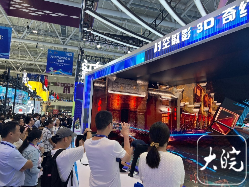 大皖新聞?dòng)浾呖吹?,該空間以安徽的凌家灘文化為切入點(diǎn),將凌家灘出土的文物塑造為活潑可愛的小玉龍IP形象,在小玉龍的帶領(lǐng)下,與觀眾一同穿越古今和未來(lái),感受徽州文化的一脈相承、創(chuàng)新發(fā)展,為觀眾呈現(xiàn)一個(gè)多維度、立體的安徽文化展示空間,實(shí)現(xiàn)科技力量賦能文化發(fā)展的具象化表達(dá)。 不遠(yuǎn)處,一處全息倉(cāng)也吸引眾多觀眾“打卡”?!巴?,可以換不同的臉,你看這個(gè)臉好可愛。”在來(lái)自合肥的企業(yè)達(dá)樸匯聯(lián)帶來(lái)的元宇宙互動(dòng)全息倉(cāng)前,很多觀眾“玩”得不亦樂乎。 “這是一款裸眼3D智能終端顯示設(shè)備,運(yùn)用人工智能、全息成像、光學(xué)捕捉等技術(shù),讓人物形象或文化藝術(shù)品以全息形式展現(xiàn)。”現(xiàn)場(chǎng)工作人員告訴大皖新聞?dòng)浾?,目前,達(dá)樸匯聯(lián)正在將數(shù)字人的形象和大模型進(jìn)行結(jié)合,實(shí)現(xiàn)更多的交互功能。用戶可以和全息艙中的數(shù)字人實(shí)時(shí)對(duì)話問(wèn)答,在元宇宙的世界中打造數(shù)字導(dǎo)游、科普講師、文藝表演者、工作助手、心靈陪伴導(dǎo)師等眾多角色。 以“古今輝映 科創(chuàng)未來(lái)”為主題 深圳文博會(huì)走過(guò)二十載,也見證了“文化皖軍”的成長(zhǎng)。 本屆深圳文博會(huì)安徽館展區(qū)面積為1287平方米,以“古今輝映 科創(chuàng)未來(lái)”為主題,展示安徽深入實(shí)施創(chuàng)新驅(qū)動(dòng)發(fā)展戰(zhàn)略,推動(dòng)傳統(tǒng)文化傳承創(chuàng)新,大力發(fā)展新質(zhì)生產(chǎn)力,賦能文化產(chǎn)業(yè)高質(zhì)量發(fā)展的最新成果。 安徽館分為主題展項(xiàng)、融合發(fā)展成果區(qū)和“潮皖薈集”三個(gè)區(qū)域。主題展區(qū)以凌家灘文化為切入點(diǎn),挖掘從古至今安徽文化與科技、旅游、建筑等領(lǐng)域融合發(fā)展的標(biāo)志性內(nèi)容,采用數(shù)字化技術(shù)展示安徽文化的一脈傳承與創(chuàng)新。