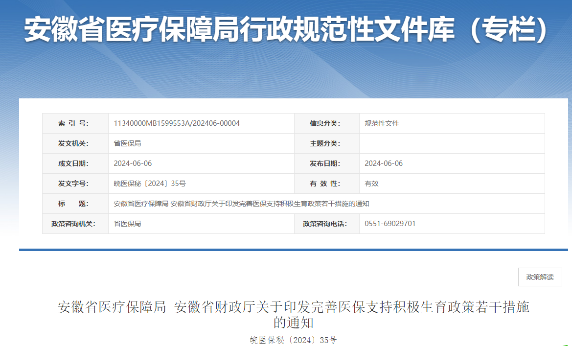 據(jù)安徽省醫(yī)保局網(wǎng)消息,近日,安徽省醫(yī)療保障局和安徽省財政廳發(fā)布關于印發(fā)完善醫(yī)保支持積極生育政策若干措施的通知。通知提出提高城鄉(xiāng)居民醫(yī)保參保人員分娩住院定額補助標準、實行生育津貼“免申即享”等措施。
