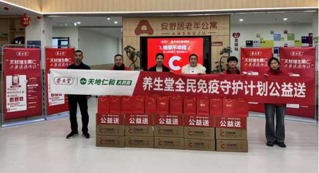 2025年11月26日,國內(nèi)知名健康品牌養(yǎng)生堂與阜陽天地仁和大藥房攜手走進(jìn)阜陽安舒居老年公寓,共同開展“全民免疫守護(hù)計(jì)劃”公益活動(dòng),以天然之力守護(hù)全民免疫力?;顒?dòng)聚焦老年人健康需求,向老人們贈(zèng)送養(yǎng)生堂天然維生素C及“免疫呵護(hù)禮包”,以實(shí)際行動(dòng)傳遞社會(huì)關(guān)愛,踐行企業(yè)社會(huì)責(zé)任。